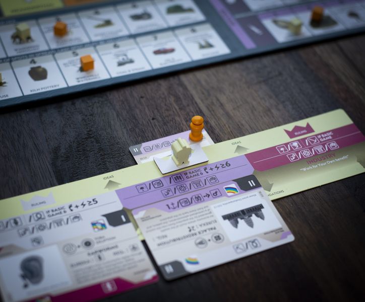El juego tiene su propio temporizador a modo de voluntad de los dioses. Cuanto más retemos a los dioses, más rápido avanzará la partida y estos nos proporcionaran unos cimientos para que nuestra especie disponga de más acciones. Existen cuatro épocas para retar a los dioses, que influirán sobre la vida terrestre a modo de cambios climáticos o pandemias, digamos que esto sería el azar de la naturaleza frente a la emergente población que camina sobre el planeta.Luego, dependiendo de la época en la cuál estemos jugando, dispondremos de unas cartas de mercado, en tres filas de tres columnas. Cada columna, favorecerá a una clase: cultural, política o industrial. Esas cartas pueden ser compradas con los peones que tengamos disponibles en nuestro libre albedrío, por eso es importante evolucionar cuanto antes, a más peones con libre albedrío más posibilidad de adquirir ideas.
