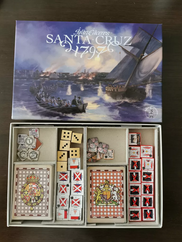 A small card driven block game about the night battle of Santa Cruz de Tenerife in 1797.British forces led by Rear Admiral Horatio Nelson tried to seize Santa Cruz de Tenerife by direct amphibious assault. The attack was a total failure and Nelson lost his lower right arm...The game pitches the British player, with superior numbers and quality, against the Spanish defenders that try to contain the British landings and avoid losing the main fortifications and vital points in the city.The game is tense, with a lot of interaction that depicts British naval movement, Spanish coastal batteries fire and plenty of action in a confused, see-saw battle that highlighted night street fighting.Nominated JT@2018 Award in Spain. %Înterwidth=50pct%