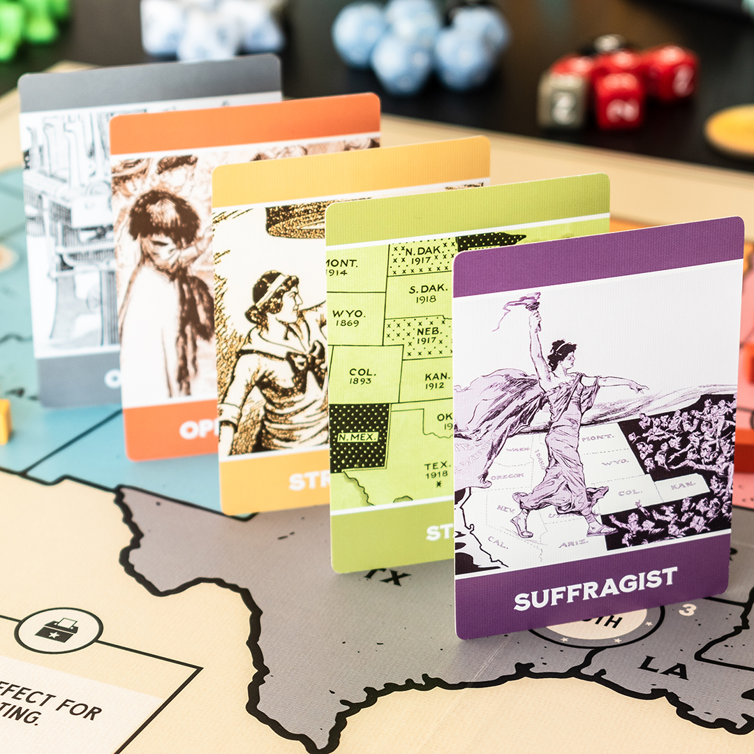 A partir de ese momento, comenzaron las reivindicaciones sociales.La decimonovena enmienda de la constitución de los Estados Unidos de Norteamérica, ratificada por todos los estados fue reconocida finalmente el 26 de agosto de 1920. Consiguiendo finalmente que el voto no fuera negado ni menoscabado por motivos de genero. Más de setenta años de reivindicaciones y de movimientos civiles, que logró cambiar a la sociedad.El juego de mesa “Votes for Women” publicado en 2022 por la editorial Fort Circle Games, centra el foco en ese momento histórico para enseñarnos de una forma más o menos histórica la lucha de género y la dificultad intrínseca en una moralidad humana al negar a sus congéneres algo tan vital como es la igualdad de derechos. Por si estás interesado, existen más juegos de la misma temática que puedes encontrar en el mercado. Este juego, diseñado por Tory Brown y con los artistas Brigette Indelicato y Marc Rodrigue (II) puede jugarse de uno a cuatro personas, en un tiempo que puede variar de sesenta a noventa minutos. El juego puede conseguirse en tiendas (en el momento de crear este artículo) de importación por un precio que oscila los 80 euros.